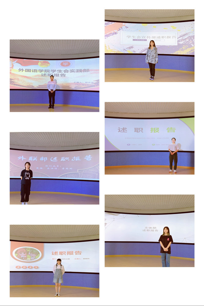 外国语学院学生会、团委、青年志愿者协会各部门负责同学依次进行述职,从政治态度、道德品行、学习情况、工作成效、纪律作风等方面全面总结过去一年的思想、学习、工作情况,剖析存在的问题和不足,并对下一年的工作进行了计划与展望。院党委副书记、院团委负责人、院学工办负责人组成评议团,对参加评议的各组织学生干部进行全面客观的量化评分?/p>
